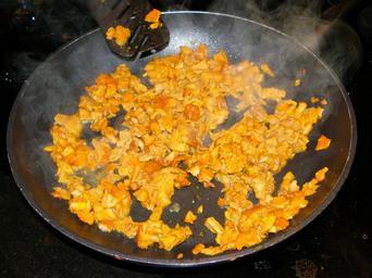 Keywords: Pan fried chanterelles.JPG Chanterelles being fried in a frying pan Kantareller i en stekpanna own 2009-08-13 Poxnar Pan cooking Taken with Pentax X70 Mushroom dishes with Cantharellus cibarius