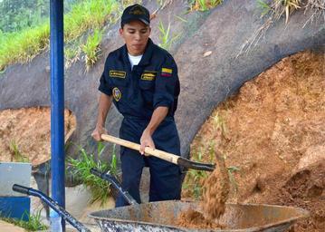 | Keywords: PANAMAX 2011 COMREL shovel 110816-N-VA590-029.jpg  en A Colombian sailor attached to coastal patrol boat ARC Jorge Moreno Salazar shovels dirt that is blocking a water passage on to a wheel barrow at the Centro Educativo Brisas del Chumical school prior to commencing PANAMAX sea phase PANAMAX 2011 is an annual multinational training exercise sponsored by U S Southern Command focusing on the security of the Panama Canal Involving 16 nations from the Western Hemisphere and more than 3 500 civil and military personnel the 12-day exercise takes place off the coasts of Panama and the United States including Fort Sam Houston Texas Miami Naval Station Mayport Florida and Stennis Mississippi among others Aug 15-26 2011-08-16 Petty Officer 1st Class Jose Lopez https //www dvidshub net/image/443866 110816-N-VA590-029 2011-08-16 19 25 PANAMA CIUDAD DE PA PD-USGov-Military-Navy Naval Station Mayport PANAMAX 2011 Images from DoD uploaded by Fæ |