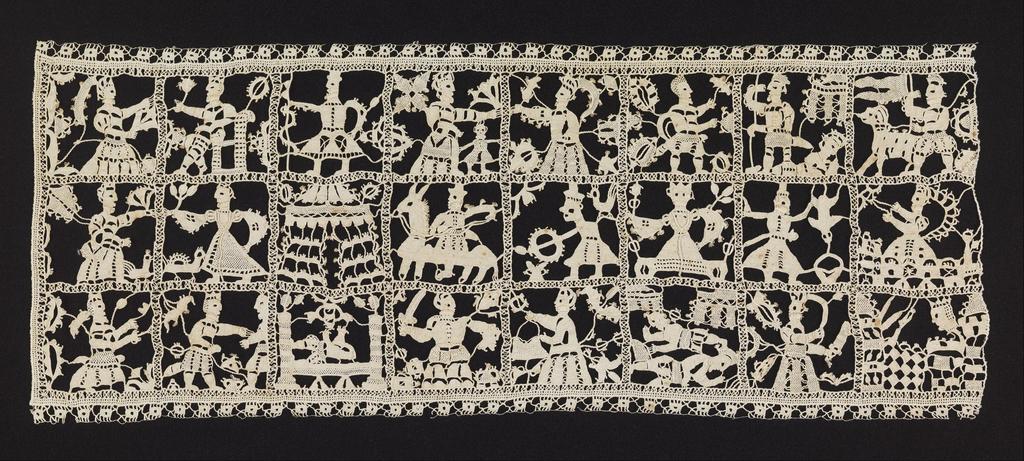 Keywords: Panel - Google Art Project (6851208).jpg ~ 1600 6938587 Unknown /collection/cooper-hewitt-national-design-museum/artwork/panel-unknown/6851208/ 132795 author /collection/cooper-hewitt-national-design-museum/ Cooper-Hewitt National Design Museum 3644669 http //www cooperhewitt org/ /collection/cooper-hewitt-national-design-museum/artwork/panel-unknown/6851208/ 1595 ca 1600 Medium linenTechnique grid of withdrawn element work with needle lace reticella style This was previously in the collection of Madame Jules Porges See research folder 6851208 False 1605 1962-50-23-a http //collection cooperhewitt org/view/objects/asitem/id/132795 Bequest of Richard Cranch Greenleaf in memory of his mother Adeline Emma Greenleaf Panel 1590 1610 w170 x d690 cm ca 1600 False 2 21645021645022 Object panel-unknown Panel p 170 Mayer Christa C 'Two centuries of needle lace' Antiques February 1965 p 117 fig 3 London Victoria Albert An American Museum of Decorative Art and Design Designs from the Cooper-Hewitt Collection New York Page 75 Plate 168 Paris Musee des Arts Decoratifs 'Les grands collections de dentelles' 1906 Plate IV fig 7CUM 'The Greenleaf Colection Textile Arts from the 16 to early 19th century' 22 January to 9 May 1964 Page 12 no 87 Washington D C National Collection of Fine Arts 'Treasures from the Cooper Union Museum 13 July to 24 Sept 1967 Page 16 no 33 H x W a 17 7 x 44 cm 6 15/16 x 17 5/16 in London Victoria Albert An American Museum of Decorative Art and Design Designs from the Cooper-Hewitt Collection New York 1973 Paris Musee des Arts Decoratifs 'Les grands collections de dentelles' 1906 New York Cooper Union Museum 'The Greenleaf Colection Textile Arts from the 16 to early 19th century 22 January to 9 May 1964 p 12 no 87 Washington D C National Collection of Fine Arts 'Treasures from the Cooper Union Museum 13 July to 24 Sept 1967 New York Cooper-Hewitt National Design Museum Shahzia Sikander Selects Works from the Permanent Collection March 6 “September 7 2009 Medium linenTechnique grid of withdrawn element work with needle lace reticella style This was previously in the collection of Madame Jules Porges See research folder special url_id -gGrmvaEdl-rsA PD-old-100 Google Art Project works by unknown artist Needle lace Google Art Project works in Cooper-Hewitt Smithsonian Design Museum