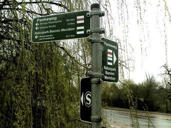Keywords: Pankeweg-blankenburg.jpg 52 35 28 N 13 26 11 E region DE-BE_heading 015 Der Pankewanderweg an der Bahnhofstraße in Französisch Buchholz own 2008-04-10 Boonekamp Panke in Berlin-Französisch Buchholz