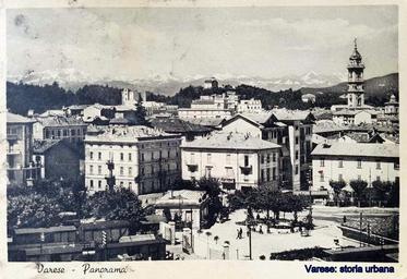 Keywords: Immagine ripresa da Giubiano. In primo piano lo scalo merci delle Ferrovie dello Stato in via Milano. A sinistra casa Marchesottiall'incrocio tra via Orrigoni e Umberto I (ora Medaglie d'Oro). varese