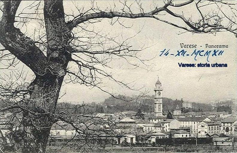 | Keywords: Panorama ripreso da Giubiano. Si riconosce la grande cupola del Politeama e si intravedono cantieri per la costruzione di case lungo via Morosini. Nascosta parzialmente dai rami, la stazione delle Ferrovie dello Stato (1865). A destra del campanile di San Vittore, sul colle Campigli, la sagoma isolata di villa Molinari-Craven-Seyssel d'Aix (arch. Giuseppe Antonio Bianchi, seconda metà del XVIII sec.). Sull'altro lato del colle Campigli, a sinistra del campanile, non è ancora stato costruito il Grand Hotel Palace. varese |