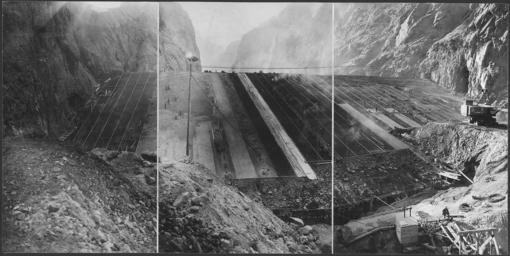 | Keywords: Panorama of upstream face of upstream cofferdam. Crest of fill at maximum elevation 720. Concrete surface in progress - NARA - 293790.tif Scope and content Photograph from Volume Two of a series of photo albums documenting the construction of Hoover Dam Boulder City Nevada General notes Original image measures approximately 14 inches in width 293790 Local identifier Department of the Interior Bureau of Reclamation Engineering and Research Center 05/18/1981 - 03/04/1988 NARA's Rocky Mountain Region Denver NRGA Building 48 Denver Federal Center West 6th Avenue and Kipling Street Denver CO 80225-0307 1933-01-06 Record group Record Group 115 Records of the Bureau of Reclamation 1889 - 2008 Record group ARC 444 Photograph albums compiled 1903 - 1972 Series ARC 293611 File unit File unit ARC Variant control numbers NAIL Control Number NRG-115-CONSTPHO85006-BC21502TO1504 yes Other versions <gallery> File Panorama of upstream face of upstream cofferdam Crest of fill at maximum elevation 720 Concrete surface in progress - NARA - 293790 jpg jpg </gallery> NARA-cooperation PD-USGov Construction of the Hoover Dam NARA TIF images with categorized JPGs |