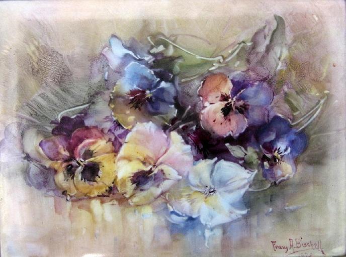 | Keywords: 'Pansies' by Franz Arthur Bischoff, 1908, oil on porcelain plaque.jpg en Pansies by Franz Arthur Bischoff 1908 oil on porcelain plaque 8 5 x 11 in American Eagle Fine Arts American Eagle Fine Arts Benicia California Franz Arthur Bischoff 1908 PD-old-auto 1929 Franz A Bischoff Oil paintings on porcelain Viola in art |