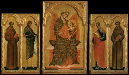 Keywords: Paolo Veneziano - Panels of a Polyptych - WGA17011.jpg Artwork Creator Paolo Veneziano Madonna and Child Saint Francis of Assisi Saint John the Baptist Saint John the Evangelist and 1354 tempera gold poplar Size cm 100 60 5 Institution Louvre object department paintings room ID 448 000PE026924 <br> 1223 accession number MI 396 MI 396bis MI 396ter place of creation Italy Q21340348 WGA link 17011 http //www wga hu/art/p/paolo/venezian/polyptyx jpg http //www wga hu/html/p/paolo/venezian/polyptyx html painting religious Italian 1301-1350 PD-old-100-1923 DEFAULTSORT Veneziano Madonna and Child Louvre MI 396 - MI 396 ter Madonna and Child Saints Francis John the Baptist John the Evangelist and Anthony of Padua - Paolo Veneziano - Louvre MI 396 - MI 396 ter 01 Madonna and Child - Paolo Veneziano - Louvre MI 396 02 St Francis of Assisi and St John the Baptist - Paolo Veneziano - Louvre MI 396 bis St John the Evangelist and St Anthony of Padua - Paolo Veneziano - Louvre MI 396 ter WGA form painting WGA type religious WGA School Italian WGA time period 1301-1350