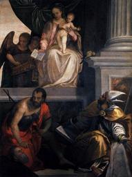 | Keywords: Paolo Veronese - Madonna Enthroned with Child, St John the Baptist, St Louis of Toulouse and Donors - WGA24757.jpg between 1546 1548 Oil on canvas size cm 223 172 Institution Museo Civico di Castelvecchio Verona object history credit line accession number WGA link 24757 http //www wga hu/art/v/veronese/01_1540s/2castel1 jpg http //www wga hu/html/v/veronese/01_1540s/2castel1 html PD-old-100 painting religious Italian 1551-1600 Sacra Conversazione by Paolo Veronese Paintings by Paolo Veronese in the Museo di Castelvecchio Verona 16th-century paintings of Madonna and Child 1540s religious paintings 1540s paintings from Italy 16th-century religious paintings in Italy WGA form painting WGA type religious WGA School Italian WGA time period 1551-1600 |