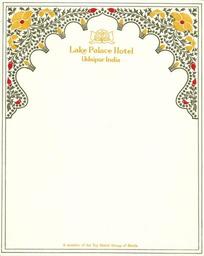 | Keywords: Paper sheet of Lake Palace Hotel.jpg en Paper sheet of Lake Palace Hotel Udaipur India 1976 fr Feuille de bloc de courrier du Lake Palace Hotel Udaipur Inde 1976 own scan 2016-12-19 Tangopaso Location not applicable Lake Palace Udaipur Paper sheets |