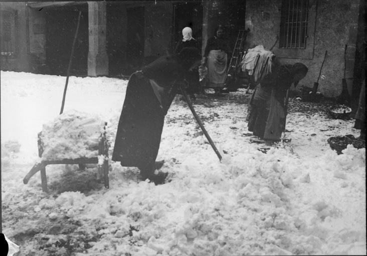 | Keywords: bibliothèque de toulouse bibliothèquedetoulouse snow women shoveling womenshoveling january 1895 blackandwhite monochrome black and white Fonds Trutat - Photographie ancienne Cote : TRU C 454 Localisation : Fonds ancien Original non communicable Titre : Papeterie de Lédar sous la neige, 4 janvier 1895 Auteur : Trutat, Eugène Rôle de l’auteur : Photographe Lieu de création : Saint-Girons (Ariège) Date de création : 1895 Mesures : 9 x 6 cm Mot(s)-clé(s) : -- Cour -- Neige -- Femme -- Costume traditionnel -- Foulard -- Tablier -- Brouette -- Pelle -- Echelle -- Papier -- Papeterie -- Saint-Girons (Ariège) -- Couserans (Ariège) -- Pyrénées (France) Médium : Photographies Médium : Positifs sur plaque de verre -- Noir et blanc -- Scènes Voir : TRU C 2554 Papeterie de Lédar sous la neige, 4 janvier 1895 Bibliothèque de Toulouse. Domaine public Fonds Trutat - Photographie ancienne Cote : TRU C 454 Localisation : Fonds ancien Original non communicable Titre : Papeterie de Lédar sous la neige, 4 janvier 1895 Auteur : Trutat, Eugène Rôle de l’auteur : Photographe Lieu de création : Saint-Girons (Ariège) Date de création : 1895 Mesures : 9 x 6 cm Mot(s)-clé(s) : -- Cour -- Neige -- Femme -- Costume traditionnel -- Foulard -- Tablier -- Brouette -- Pelle -- Echelle -- Papier -- Papeterie -- Saint-Girons (Ariège) -- Couserans (Ariège) -- Pyrénées (France) Médium : Photographies Médium : Positifs sur plaque de verre -- Noir et blanc -- Scènes Voir : TRU C 2554 Papeterie de Lédar sous la neige, 4 janvier 1895 Bibliothèque de Toulouse. Domaine public |