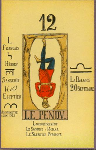 | Keywords: Papus Atout 12-pendu-hanged-man.png en Page with tarot trump design from Papus Le Tarot Divinatoire Le Livre des Mystères et les Mystères du Livre Clef du tirage des cartes et des sorts Avec la reconstitution complète des 78 lames du Tarot Égyptien et de la méthode d'interprétation Les 22 arcanes majeurs et les 56 arcanes mineurs Libr Hermétique Paris 1909 1909 http //insightfulvision com/gallery-papus- php Papus i e Gérard Analect Vincent Encausse 1865 “1916 other versions PD-old-70-1923 Papus Tarot 1909 Hanged Man Major Arcana |