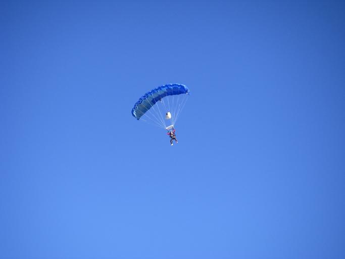 Keywords: parachutist blue sky skydiving parachute fly