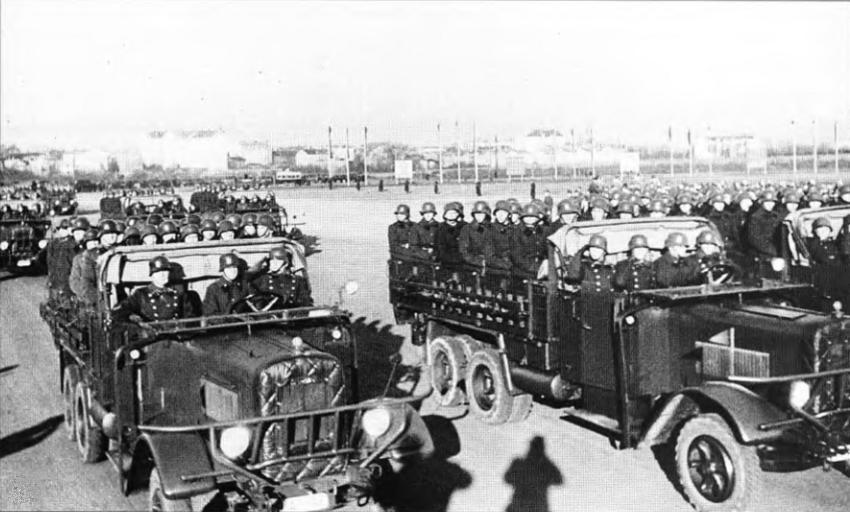 | Keywords: Parad Riga 7 11 1940.PNG  Пехота 24-го ст алкового латышского ко пуса на немецких г узовиках Ханшелл- 33Г1 на па аде Рига 7 нояб я 1940 Ф онтовая иллюст ация 5 2002 Бои в П ибалтике РГАКФД 7 11 1940 Author PD-Russia-2008 7 November 1940 in Riga |