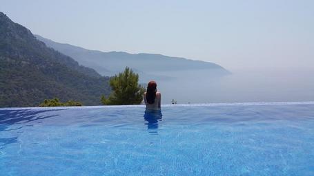 Keywords: paradise endless pool blue pool swimming holiday relax summer spa travel lifestyle relaxation nature tropical woman girl enjoyment female landscape luxury eternity model sky sea lady