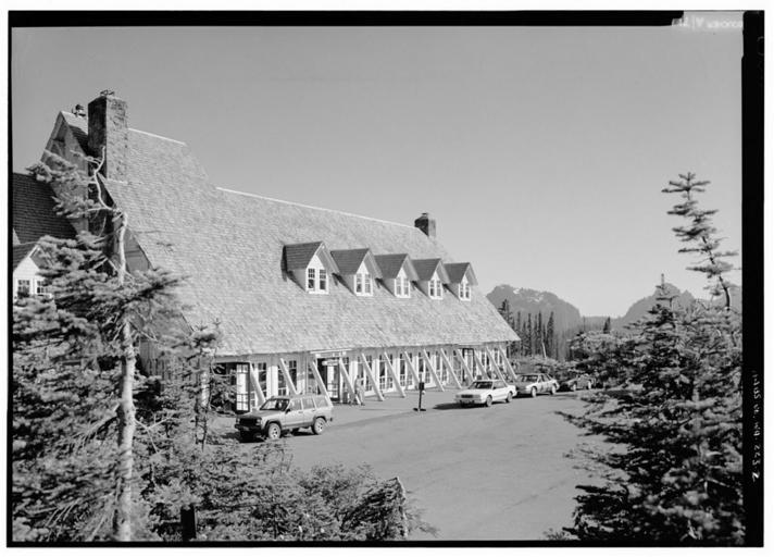 | Keywords: Paradise Inn GENERAL VIEW OF ENTRANCE.jpg 87001336 en Title Paradise Inn Paradise Pierce WA Other Title Mount Rainier National Park Creator s Historic American Buildings Survey creator Related Names Price Virginia B transmitter Medium Photo s 13 5 x 7 in Photo Caption Page s 2 Color Transparencies 3 Reproduction Number See Call Number Call Number HABS WASH 27-PARA 1- Repository Library of Congress Prints and Photographss Division Washington D C 20540 USA Notes o Survey number HABS WA-223 o National Register of Historic Places NRIS Number 87001336 Subjects o dining rooms o hotels o log buildings o WASHINGTON--Pierce--Paradise Collections o Historic American Buildings Survey/Historic American Engineering Record/Historic American Landscapes Survey Part of Historic American Buildings Survey Library of Congress Contents Photograph caption s 1 GENERAL VIEW OF EXTERIOR 2 GENERAL VIEW OF ENTRANCE 3 CLOSER VIEW OF EXTERIOR 4 INTERIOR VIEW LOBBY AREA 5 INTERIOR VIEW LOBBY SEATING 6 INTERIOR CLOSER VIEW OF LOBBY SEAT FURNITURE 7 INTERIOR VIEW REGISTRATION DESK IN LOBBY 8 INTERIOR CLOSER VIEW OF REGISTRATION DESK 9 INTERIOR VIEW POST OFFICE IN LOBBY 10 INTERIOR VIEW GALLERY AREA 11 INTERIOR VIEW CEILING RAFTERS AND LIGHT FIXTURES FROM GALLERY 12 INTERIOR CLOSER VIEW OF LIGHT FIXTURES 13 INTERIOR VIEW DINING ROOM General view duplicate of HABS No WA-223-1 General view looking to the entrance duplicate of HABS No WA-223-2 Interior view dining room duplicate of HABS No WA-223-13 Library of Congress http //lcweb2 loc gov/pnp/habshaer/wa/wa0600/wa0661/photos/190172pv jpg Historic American Buildings Survey n/a http //lcweb2 loc gov/pnp/habshaer/wa/wa0600/wa0661/photos/190172pu tif PD-USGov Paradise Inn |