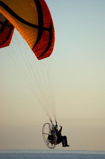 Keywords: paraglider motor sea red abendstimmung movement attraction fun evening parachute sunset orange water beautiful mood yellow sky evening sky atmospheric dusk afterglow nature beach landscape engine companies human coast holiday sporty tourists hobby leisure sport action fly wind