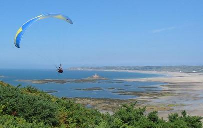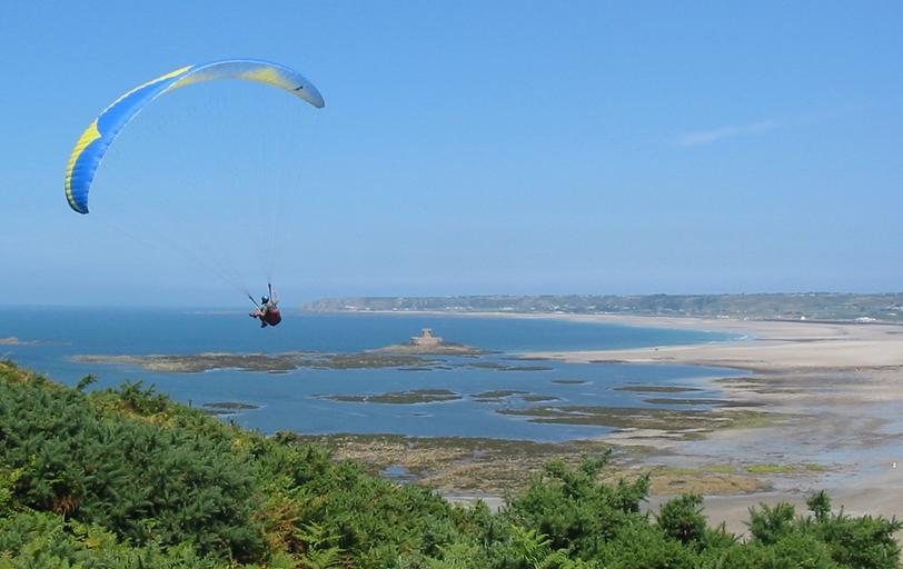 Keywords: Paragliding St Ouen's Bay, Jersey.jpg Paragliding in St Ouen's Bay Jersey Photo taken looking North from La Sergenté In the bay La Rocco Tower and in the distance L'Étacq Photo taken by Man vyi with Canon PowerShot A40 on 22/7/2005 2005-07-22 own assumed Man vyi Coasts of Jersey Aviation in Jersey |