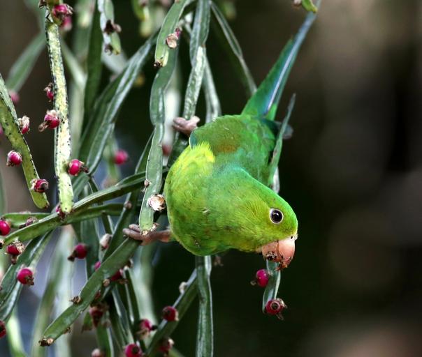 Keywords: parakeet green food feeding looking natural habitat brazilian bird bird
