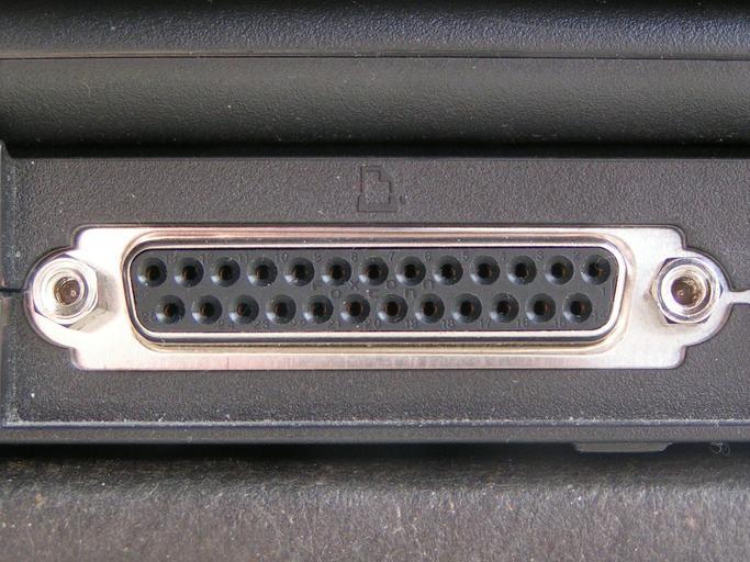 Keywords: Parallel computer printer port.jpg Parallel computer printer port own 2006-05-24 Duncan Lithgow Permission is given to use as per the license IEEE 1284 DB-25 connector