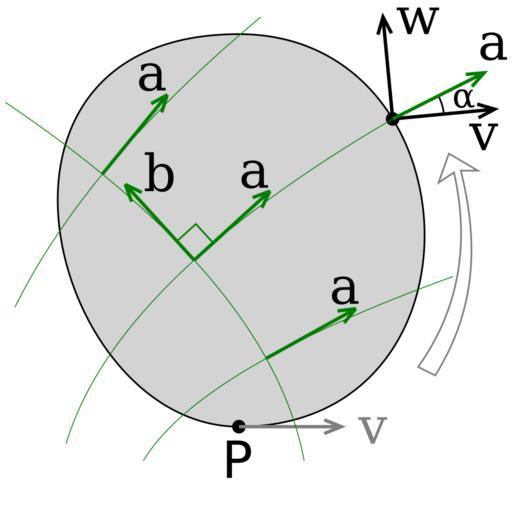 | Keywords: Parallel transport and unit vector inside 2D.svg en One unit vector v is parallel transported around the closed loop in 2D manifold Another unit vector a is defined and smooth inside the region that is enclosed by this loop This picture is used in proof of Gauss-Bonnet theorem uk Одиничний векто v па алельно пе еноситься довкола замкнутого конту а у двовимі ному многовиді Інший одиничний векто a визначений і гладкий все едині області обмеженої конту ом Цей малюнок вико истовується п и доведенні тео еми Ґауса-Бонне Own Wladik Derevianko 2010-03-14 Differential geometry |