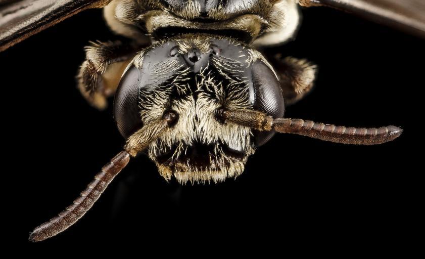 Keywords: brachynomadini taxonomy:binomial=paranomada velutina taxonomy:binomial=paranomadavelutina paranomada velutina paranomadavelutina paranomada bee bees biml usgsbiml droege arizona desert north america northamerica united states unitedstates макросъемка makro マクロ природа natur 自然 الطبيعة 大自然 naturaleza natura насекомое insekt 自然الحشرة 昆蟲 insectos nest parasite nestparasite parasite animal A nest parasite from the dry regions of Mexico and the Southwestern United States, this group infiltrates the communal nests of Exomalopsis to lay their eggs in the nest cells being built. Lovely combination of plush hair bands and shiny integumen. ~~~~~~~~~~{{{{{{0}}}}}}~~~~~~~~~~ All photographs are public domain, feel free to download and use as you wish. Photography Information: Canon Mark II 5D, Zerene Stacker, Stackshot Sled, 65mm Canon MP-E 1-5X macro lens, Twin Macro Flash in Styrofoam Cooler, F5.0, ISO 100, Shutter Speed 200 The murmuring of bees has ceased; But murmuring of some Posterior, prophetic, Has simultaneous come,-- The lower metres of the year, When nature's laugh is done,-- The Revelations of the book Whose Genesis is June. -Emily Dickinson Want some Useful Links to the Techniques We Use? Well now here you go Citizen: Basic USGSBIML set up: www.youtube.com/watch?v=S-_yvIsucOY USGSBIML Photoshopping Technique: Note that we now have added using the burn tool at 50% opacity set to shadows to clean up the halos that bleed into the black background from "hot" color sections of the picture. www.youtube.com/watch?v=Bdmx_8zqvN4 PDF of Basic USGSBIML Photography Set Up: ftp://ftpext.usgs.gov/pub/er/md/laurel/Droege/How%20to%20Take%20MacroPhotographs%20of%20Insects%20BIML%20Lab2.pdf Google Hangout Demonstration of Techniques: plus.google.com/events/c5569losvskrv2nu606ltof8odo or www.youtube.com/watch?v=4c15neFttoU Excellent Technical Form on Stacking: www.photomacrography.net/ Contact information: Sam Droege sdroege@usgs.gov 301 497 5840 A nest parasite from the dry regions of Mexico and the Southwestern United States, this group infiltrates the communal nests of Exomalopsis to lay their eggs in the nest cells being built. Lovely combination of plush hair bands and shiny integumen. ~~~~~~~~~~{{{{{{0}}}}}}~~~~~~~~~~ All photographs are public domain, feel free to download and use as you wish. Photography Information: Canon Mark II 5D, Zerene Stacker, Stackshot Sled, 65mm Canon MP-E 1-5X macro lens, Twin Macro Flash in Styrofoam Cooler, F5.0, ISO 100, Shutter Speed 200 The murmuring of bees has ceased; But murmuring of some Posterior, prophetic, Has simultaneous come,-- The lower metres of the year, When nature's laugh is done,-- The Revelations of the book Whose Genesis is June. -Emily Dickinson Want some Useful Links to the Techniques We Use? Well now here you go Citizen: Basic USGSBIML set up: www.youtube.com/watch?v=S-_yvIsucOY USGSBIML Photoshopping Technique: Note that we now have added using the burn tool at 50% opacity set to shadows to clean up the halos that bleed into the black background from "hot" color sections of the picture. www.youtube.com/watch?v=Bdmx_8zqvN4 PDF of Basic USGSBIML Photography Set Up: ftp://ftpext.usgs.gov/pub/er/md/laurel/Droege/How%20to%20Take%20MacroPhotographs%20of%20Insects%20BIML%20Lab2.pdf Google Hangout Demonstration of Techniques: plus.google.com/events/c5569losvskrv2nu606ltof8odo or www.youtube.com/watch?v=4c15neFttoU Excellent Technical Form on Stacking: www.photomacrography.net/ Contact information: Sam Droege sdroege@usgs.gov 301 497 5840