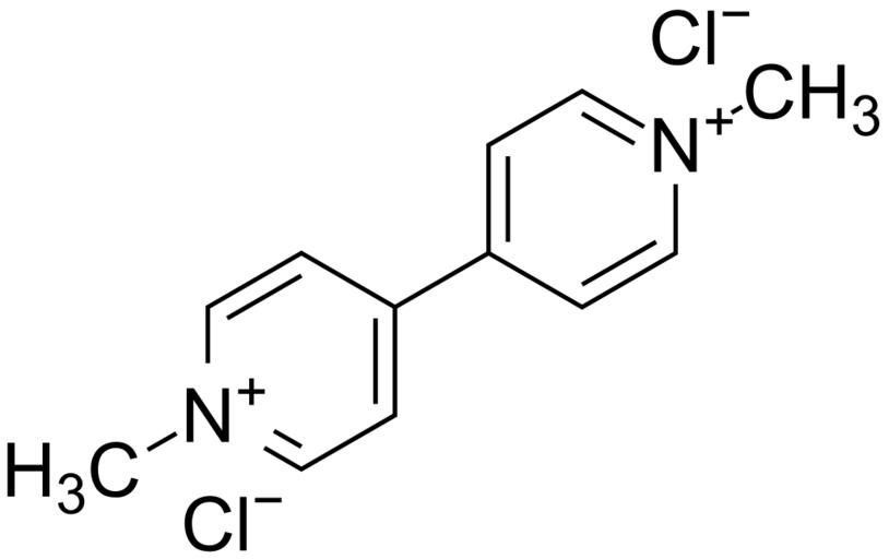 Keywords: Paraquat 200.svg validSVG Structure of 1 1'-dimethyl-4 4'-bipyridine-1 1'-diium chloride Own 2014-04-13 Emeldir <span class signature-talk >talk</span> Chemical structure verified https //upload wikimedia org/wikipedia/commons/f/f9/Paraquat_200 svg 1S/C12H14N2 2ClH/c1-13-7-3-11 4-8-13 12-5-9-14 2 10-6-12;;/h3-10H 1-2H3;2 1H/q+2;;/p-2 FIKAKWIAUPDISJ-UHFFFAOYSA-L 1910-42-5 217-615-7 Synonyms <small>1 1'-Dimethyl-4 4'-bipyridynium dichloride 1 1'-Dimethyl-4 4'-dipyridylium chloride 1 1'-Dimethyl-4 4'-bipyridinium 1 1'-Dimethyl-4 4'-bipyridinium dichloride 1 1'-dimethyl-4 4'-Bipyridinium dichloride 1 1'-Dimethyl-4 4'-bipyridinium dichloride hydrate 1 1'-Dimethyl-4 4'-bipyridinium dichloride trihydrate 1 1'-Dimethyl-4 4'-bipyridium chloride 1 1'-Dimethyl-4 4'-bipyridylium dichloride 1 1'-Dimethyl-4 4'-dipyridylium dichloride 1 1-Dimethyl-4 4-dipyridilium dichloride 1-methyl-4- 1-methylpyridin-1-ium-4-yl pyridin-1-ium dichloride 4 4'-Bipyridinium 1 1'-dimethyl- dichloride 8CI9CI 4 4'-Dimethyldipyridyl dichloride Arial Gramoxone R Bipyridinium 1 1'-dimethyl-4 4'- dichloride Crisquat Dextrone X R Dextrone-X Dexuron Dichloride salt of paraquat Dimethyl-4 4'-bipyridinium dichloride Dimethyl-4 4'-bipyridylium dichloride Dimethyldipyridyl chloride Esgram Gramixel Grammoxone Gramoxone Gramoxone dichloride Gramoxone S Gramoxone W Gramoxone R Gramuron Methyl viologen Methyl Viologen Methyl viologen 2+ Methyl viologen reduced methyl viologen dichloride Methyl viologen dichloride Methyl viologen dichloride hydrate Methyl Viologen hydrate Methyl viologen n-hydrate Methyl Viologen trihydrate N N'-Dimethyl-4 4'-dipyridylium dichloride N N'-Dimethyl-4 4'-bipyridinium dichloride N N'-Dimethyl-gamma gamma'-bipyridylium N N'-dimethyl-gamma gamma'-bipyridylium dichloride N N'-Dimethyl-gamma gamma'-bipyridylium dichloride Ortho Paraquat CL Orthoparaquat Para-col Paraquat Paraquat from dichloride Paraquat + Linuron + Metolachlor Paraquat chloride Paraquat Cl Paraquat cl Paraquat CL tetrahydrate Paraquat dichloride Paraquat dichloride hydrate Paraquat dichloride tetrahydrate Paraquat dichloride trihydrate paraquat dichloride trihydrate Pathclear Pillarxone PP148 Preeglone R Prelude Starfire 1 5 Tota-col Toxer Total Viologen methyl- Weedol R WLN T6KJ A1 D- DT6KJ A1 G 2</small> PD-chem Chloride salts of organic compounds Paraquat |