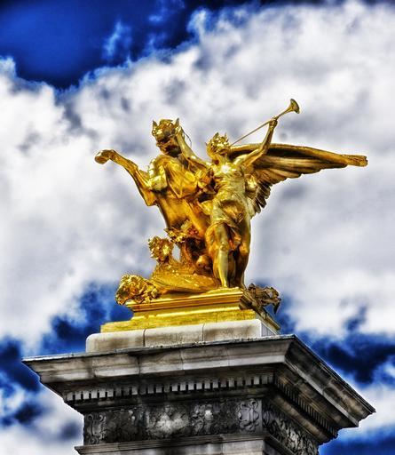 Keywords: paris france sculpture statue monument sky clouds skyline hdr