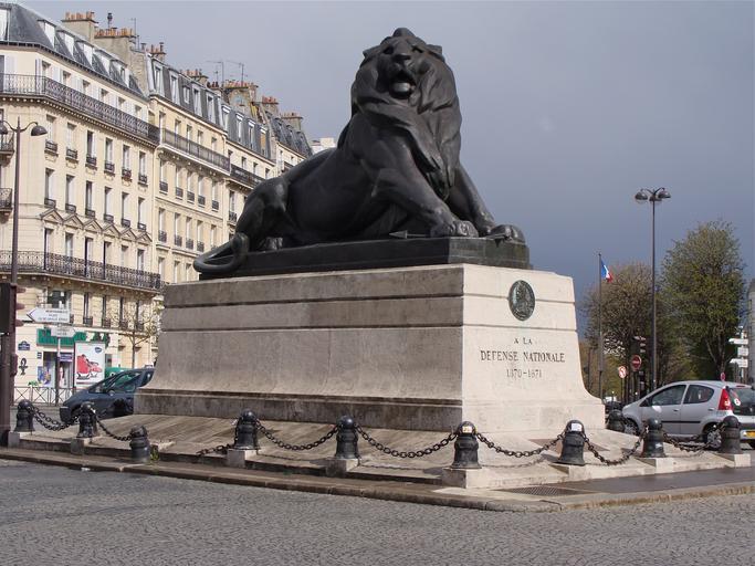 Keywords: paris statue monument france city places of interest scene urban street sculpture sculptures lion sunny tourism architecture