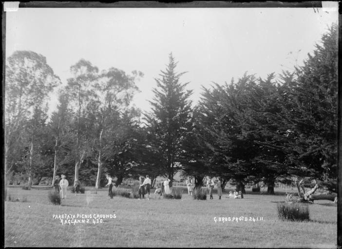 | Keywords: blackandwhite monochrome outdoor photo border snow black and white Paretata (or Paritata) picnic grounds, Raglan, 1910, photographed by Gilmour Brothers. A number of people wearing summery clothing are walking and playing, with a group of three seated on the ground. The grassy area is surrounded by trees. Inscriptions: Inscribed - Photographer's title on negative -bottom right: G Bros Protd 24.1.11bottom left: Paretata picnic grounds, Raglan NZ 430. Quantity: 1 b&w original negative(s). Physical Description: Dry plate glass negative 6.5 x 4.75 inches    Gilmour Brothers (Firm). Paritata picnic grounds, Raglan - Photograph taken by Gilmour Brothers. Price, William Archer, 1866-1948 :Collection of post card negatives. Ref: 1/2-001017-G. Alexander Turnbull Library, Wellington, New Zealand. natlib.govt.nz/records/23097189 Paretata (or Paritata) picnic grounds, Raglan, 1910, photographed by Gilmour Brothers. A number of people wearing summery clothing are walking and playing, with a group of three seated on the ground. The grassy area is surrounded by trees. Inscriptions: Inscribed - Photographer's title on negative -bottom right: G Bros Protd 24.1.11bottom left: Paretata picnic grounds, Raglan NZ 430. Quantity: 1 b&w original negative(s). Physical Description: Dry plate glass negative 6.5 x 4.75 inches    Gilmour Brothers (Firm). Paritata picnic grounds, Raglan - Photograph taken by Gilmour Brothers. Price, William Archer, 1866-1948 :Collection of post card negatives. Ref: 1/2-001017-G. Alexander Turnbull Library, Wellington, New Zealand. natlib.govt.nz/records/23097189  |