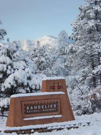 Keywords: Park Entrance Sign Winter Bandelier National Monument
