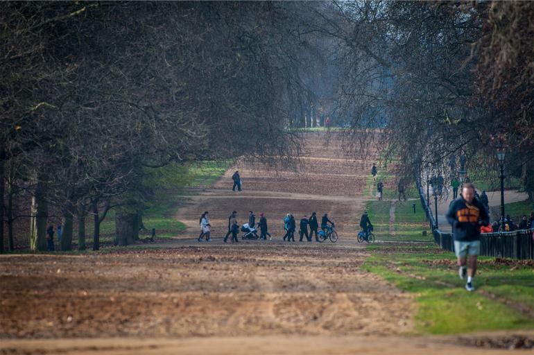 Keywords: park people runner running fitness exercise trees grass dirt leaves