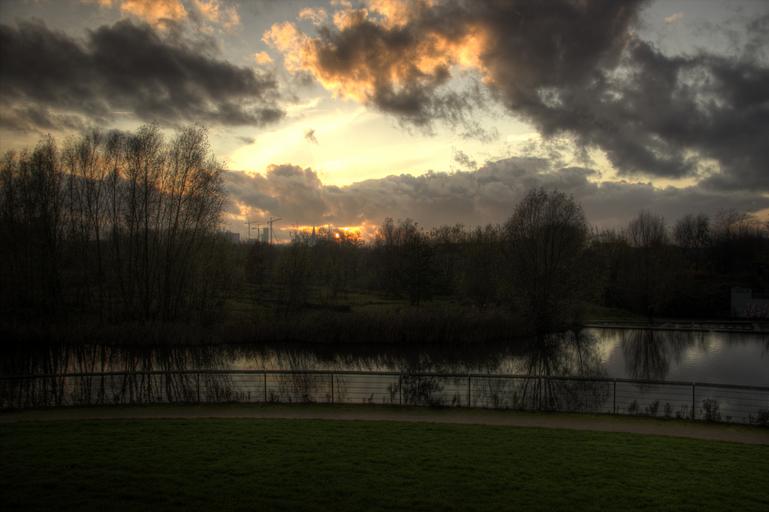 Keywords: park sunset grass water brook green clouds air utrecht netherlands