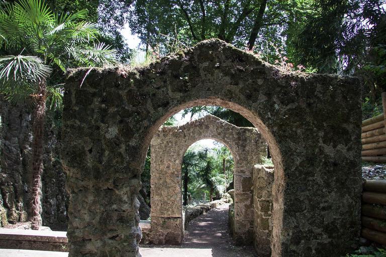 Keywords: park trees tree garden generously romantic arch archway bricked away