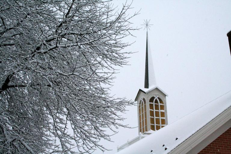 Keywords: park view mennonite church mennonite church steeple winter snow religion building architecture