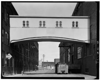 Keywords: Parke-Davis Research Laboratory VIEW OF GUOIN STREET BRIDGE (BETWEEN BUILDINGS -16 AND -4).jpg Stroh River Place Complex Creator s Historic American Engineering Record creator Medium Photo s 20 4 x 5 in Photo Caption Page s 3 Reproduction Number See Call Number Call Number HAER MICH 82-DETRO 44- Repository Library of Congress Prints and Photographss Division Washington D C 20540 USA Notes Survey number HAER MI-19 National Register of Historic Places NRIS Number 76001039 Subjects pharmaceutical industry brick buildings industrial facilities MICHIGAN--Wayne--Detroit Collections Historic American Buildings Survey/Historic American Engineering Record/Historic American Landscapes Survey Part of Historic American Engineering Record Library of Congress Contents Photograph caption s 1 VIEW OF GUOIN STREET BRIDGE BETWEEN BUILDINGS 16 AND 4 WEST SIDE 2 VIEW LOOKING WEST ON GUOIN STREET 3 VIEW LOOKING EAST ON GUOIN STREET 4 VIEW LOOKING EAST SHOWING SECURITY OFFICE BUILDING 8 5 VIEW LOOKING SOUTHEAST SHOWING INTERIOR OF 16/4 BRIDGE 6 VIEW LOOKING NORTHWEST SHOWING INTERIOR OF 13/65 BRIDGE 7 VIEW SHOWING SOUTH AND WEST SIDES OF POWER PLANT BUILDING 4 8 VIEW SHOWING SOUTH AND WEST SIDES OF BUILDING 6 9 VIEW LOOKING NORTHWEST FROM ROOF OF BUILDING 1 SHOWING SMOKESTACK 10 VIEW SHOWING CONNECTOR BETWEEN BUILDINGS 1 AND 65 NORTH SIDE 11 VIEW SHOWING CONNECTOR 1/65 SOUTH SIDE 12 VIEW LOOKING SOUTH SHOWING THIRD FLOOR OF 60 SERIES BRIDGE 13 VIEW LOOKING NORTH SHOWING THIRD FLOOR OF 60 SERIES BRIDGE 14 VIEW SHOWING NORTH END WEST SIDE OF 60 SERIES BRIDGE 15 VIEW SHOWING SOUTH END WEST SIDE OF 60 SERIES BRIDGE 16 VIEW SHOWING CONNECTOR BETWEEN BUILDINGS 63 AND 64 NORTH SIDE 17 VIEW SHOWING CONNECTOR 63/64 SOUTH SIDE 18 VIEW LOOKING SOUTH SHOWING LOADING DOCK AND SHAFT BETWEEN PUILDINGS 1 AND 60 19 VIEW LOOKING NORTHWEST BETWEEN BUILDINGS 64 AND 68 20 VIEW LOOKING SOUTHEAST FROM 1/65 CONNECTOR Library of Congress http //lcweb2 loc gov/pnp/habshaer/mi/mi0100/mi0171/photos/090009pv jpg Historic American Engineering Record n/a http //lcweb2 loc gov/pnp/habshaer/mi/mi0100/mi0171/photos/090009pu tif - ---- - VIEW OF GUOIN STREET BRIDGE BETWEEN BUILDINGS 16 AND 4 WEST SIDE River Place Detroit Michigan ”Stroh River Place Complex Historic American Buildings Survey ”HABS image; HAER MICH 82-DETRO 44-1 - ---- PD-USGov Footbridges in Michigan Omni Detroit Hotel at River Place Buildings in Detroit Michigan Factories in Michigan National Historic Landmarks in Michigan National Register of Historic Places in Detroit Michigan Historic American Buildings Survey of Michigan Black and white photographs of bridges in the United States Black and white photographs of buildings Black and white photographs of Michigan Skyways in the United States Industry in Detroit