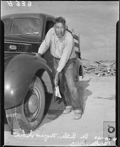 | Keywords: Parker, Arizona. Ben Butler, a Mojave and the most successful farmer on the Colorado Indian Reserva . . . - NARA - 536267.tif Scope and content The full caption for this photograph reads Parker Arizona Ben Butler a Mojave and the most successful farmer on the Colorado Indian Reservation Farmers and gardeners among evacuees of Japanese ancestry will be given opportunity to follow their callings at War Relocation Authority center on the reservation General notes 536267 Local identifier 210-G-A333 Department of the Interior War Relocation Authority 02/16/1944 - 06/30/1946 NARA-Author Albers Clem Photographer 8452194 <br /> Still Picture Records Section Special Media Archives Services Division NWCS-S National Archives at College Park 8601 Adelphi Road College Park MD 20740-6001 1942-04-10 Record group Record Group 210 Records of the War Relocation Authority 1941 - 1989 Record group ARC 537 Central Photographic File of the War Relocation Authority compiled 1942 - 1945 Series ARC 536000 File unit File unit ARC Variant control numbers NAIL Control Number NWDNS-210-G-A333 yes Other versions <gallery> File Parker _Arizona _Ben_Butler _a_Mojave_and_the_most_successful_farmer_on_the_Colorado_Indian_Reserva_ _ _ _-_NARA_-_536267 tif tif File Parker _Arizona _Ben_Butler _a_Mojave_and_the_most_successful_farmer_on_the_Colorado_Indian_Reserva_ _ _ _-_NARA_-_536267 jpg jpg </gallery> NARA-cooperation PD-USGov NARA TIF images with categorized JPGs Mohave Men of the United States Trucks in the United States La Paz County Arizona Black and white photographs of men Black and white photographs of Arizona Pickup trucks 1941 Ford trucks Ford V8 trucks 1940-41 |