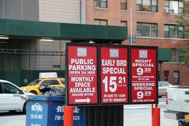 Keywords: new york nyc street car-park park urban sign entrance open building manhattan garage city neon 24hrs midtown ny