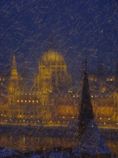 Keywords: parliament hungary building in the evening lighting budapest city snow winter