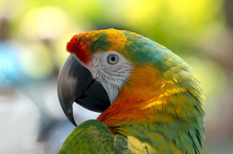 Keywords: parrot bird colorful feather perched tropical portrait head beak profile close up wildlife nature