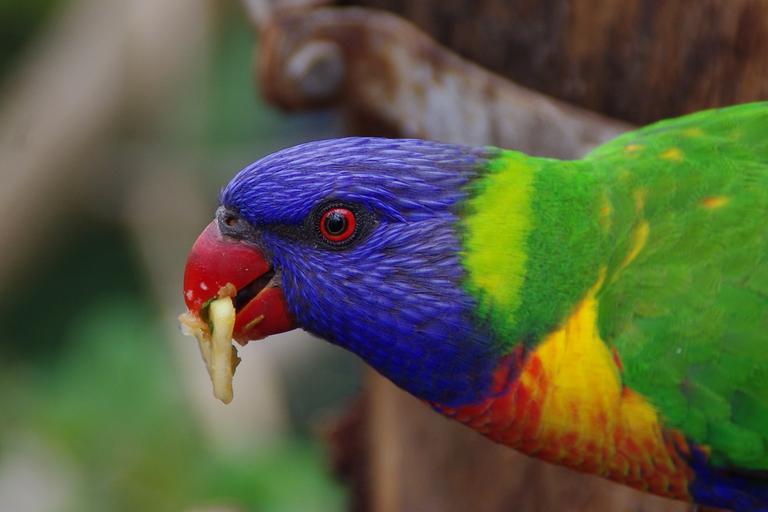 Keywords: parrot bird plumage colorful color head bill feather yellow blue eye nature close