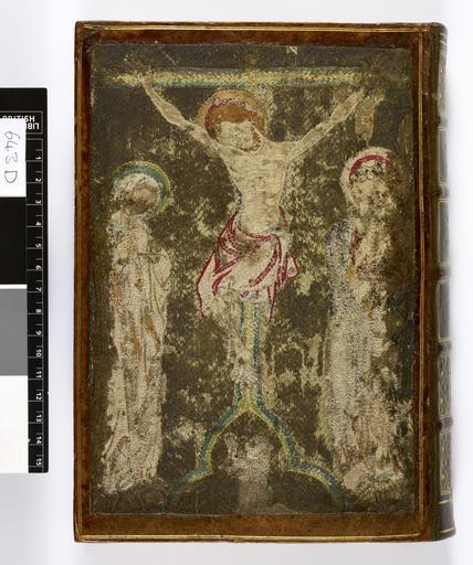 | Keywords: Part 1; Psalter ('The Felbrigge Psalter'), with a calendar, imperfect (lacking July and August), canticles, litany, and prayers Origin France, N. Date 2nd or 3rd quarter of the 13th centu - Lower cover (Sloane manuscript 2400).jpg Style Religious miscellaneous; Caption Lower cover; Colour Unspecified; Edge Unspecified exhibition history Decorative Technique Embroidered; Cover Material Unspecified Historiated embroidered panels in silver red green yellow and brown on a linen ground incorporated into an 18th-century binding This is the earliest known surviving embroidered binding see Foot 1986 Binding 1st quarter of the 14th century Provenance English ownership additions in the calendar of the translations of Edmund of Canterbury bishop and confessor and Edmund king and martyr in June and other additions see Wallis 1987 p 71 Anne Felbrigge daughter of Sir Simon Felbrigge b 1368 d 1442 standard-bearer to Richard II and nun of the Franciscan Poor Clares abbey of the Annunciation of St Mary Bruisyard Suffolk the Felbrigge arms of a lion rampant gules on the painted edges; inscriptions 'ffelbrigg' f 1 verso ; 'Iste liber est sororis anne ffelbrygge ad terminum vite post cuius decessum pertinebit conventui minorissarum de Brusyerde' 2v ; obits of Anne's mother Margaret and father Simon in the calendar ff 3 5v 7v ; the probable addition during her ownership of prayers ff 165-166v object history Text 14c; Unspecified; Unspecified object type Cc-zero place of creation Binding England place of discovery Unspecified British Library image http //www bl uk/catalogues/bookbindings/LargeImage aspx RecordId 020-000015337 ImageId ImageId 54806 Copyright BL Part 1; Psalter 'The Felbrigge Psalter' with a calendar imperfect lacking July and August canticles litany and prayers Origin France N Date 2nd or 3rd quarter of the 13th century Language Latin Script Gothic written below top line Uploaded with GWToolset Part 1; Psalter 'The Felbrigge Psalter' with a calendar imperfect lacking July and August canticles litany and prayers Origin France N Date 2nd or 3rd quarter of the 13th centu - Lower cover Sloane manuscript 2400 http //www webarchive org uk/bldatasets/bindings/sloane 202400_BC jpg Bookbinding 14th-century bookbinding British Library Bookbindings Taken with Phase One P45+ |