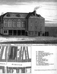 | Keywords: Part of the Marshalsea prison, London, 1773.jpg Part of the first Marshalsea prison on Borough High Street Southwark showing the south front of the north side 1773 The building with columns housed a courtroom The door to the strong room is on the farthest right of the building on the right See Jerry White http //hwj oxfordjournals org/content/68/1/69 Pain and Degradation in Georgian London Life in the Marshalsea Prison History Workshop Journal Volume 68 Issue 1 2009 pp 69 “98 pp 80 “81 White 2009 above White writes that the image dates from January 1773 and was published in 1812 1773-01 author File Marshalsea prison 1773 JPG File Marshalsea prison 1773 2 JPG PD-old-100 Marshalsea |