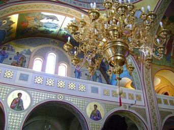 Keywords: Particolare cattedrale ortodossa Fira, Santorini 1.JPG en A detail of the interior of the Orthodox Cathedral of Candlemas of the Lord in the village of Fira Santorini Island Greece it Un particolare dell'interno della cattedrale ortodossa della Candelora del Signore nel villaggio di Fira isola di Santorini Grecia own Zitumassin 11/08/2009 Cathedral of Candlemas of the Lord - Interior