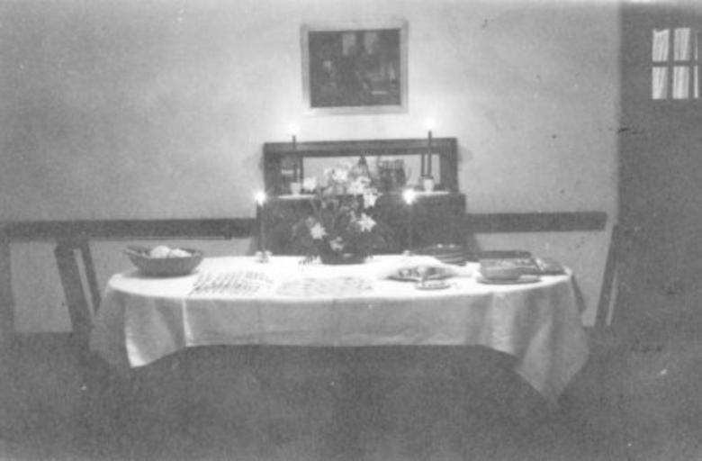 Keywords: home economics homeeconomics goshen college goshencollege table party mennonite community mennonites cooking food mennonitecommunitymennonitescookingfood blackandwhite monochrome black and white Caption: 1947. Goshen, Indiana. Home Economics Club party, Goshen College. Citation: Mennonite Community Photograph Collection, 1947-1953. Food. HM4-134 Box 1 Photo 146-2. Mennonite Church USA Archives - Goshen. Goshen, Indiana. Caption: 1947. Goshen, Indiana. Home Economics Club party, Goshen College. Citation: Mennonite Community Photograph Collection, 1947-1953. Food. HM4-134 Box 1 Photo 146-2. Mennonite Church USA Archives - Goshen. Goshen, Indiana. |