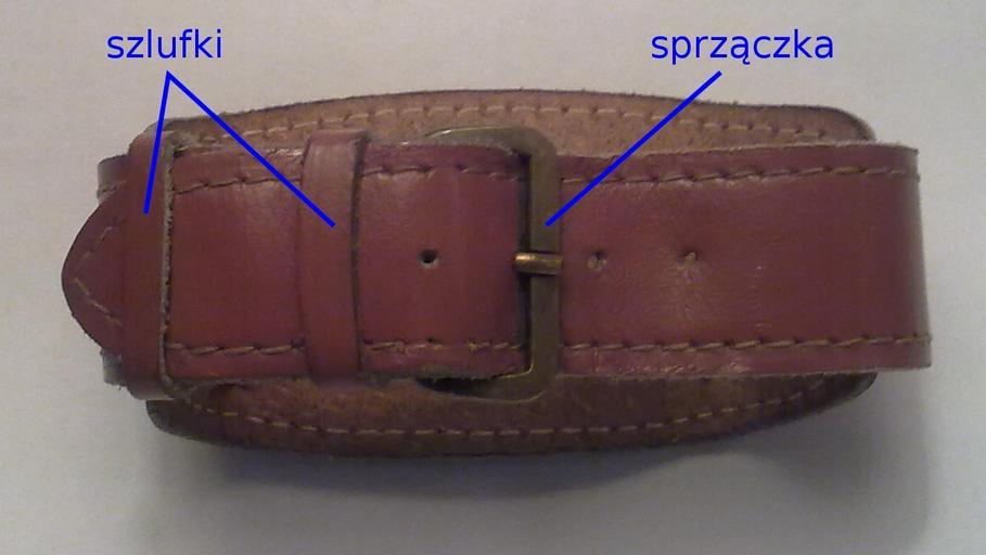 Keywords: Pasek do zegarka.jpg en Leather watch belt pl skórzany pasek do zegarka; na zdjęciu zaznaczone jego szlufki i sprzączka own Julo 2009-12-01 Julo Leather belts Watch strap Belt buckles