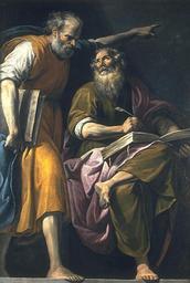 | Keywords: Pasquale Ottino San Marcos escribe sus Evangelios al dictado de San Pedro Musée des Beaux-Arts, Bordeaux.jpg attributed to century 17 oil canvas cm 243 169 Institution Musée des Beaux-Arts de Bordeaux accession number object history credit line www europeana eu 000PE023323 PD-old-100-1923 Pasquale Ottino Saint Marc Musée des Beaux-Arts de Bordeaux 17th-century paintings of Saint Peter Ottino Paintings of Saint Mark Ottino Images from Europeana Pointing right in art Paintings not categorised by year 17th-century oil on canvas paintings in France 17th-century religious paintings in France Paintings of bearded men Men with books in art |