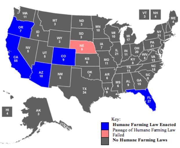 | Keywords: Passage of humane farming laws referendum 2008.png law-related map en Only 5 states have passed humane farming laws Own Sam Smith Check categories 2010 April 5 en wikipedia Animal_welfare en wikipedia Cruelty_to_animals en wikipedia California_Proposition_2_ 2008 4 Referendums in 2008 Agriculture in California Law |
