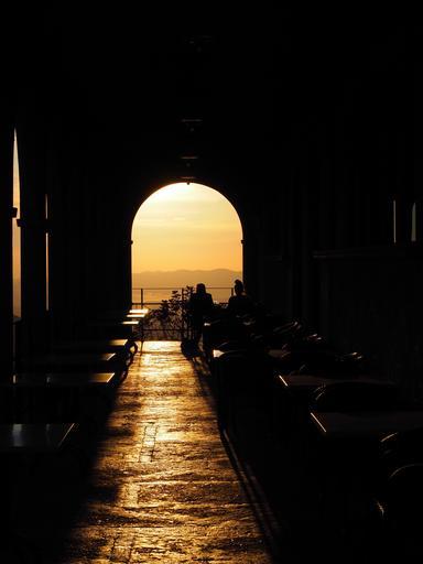 Keywords: passage round arch abendstimmung local cozy romantic dinner monastery cura cura santuari de nostra senyora de cura monastery puig de randa balearic islands spain mallorca franciscan monastery place of pilgrimage