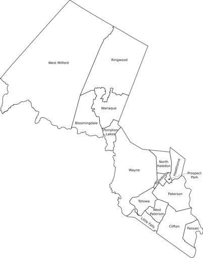 | Keywords: Passaic County, NJ municipalities labeled.svg Passaic County New Jersey outline map of municipalities labeled Sources NJDEP publishes Arcview shape format outline maps of counties and municpalities Believed PD-ineligible http //www state nj us/dep/gis/munshp html Converted to SVG edited in inkscape Labeled according to http //www state nj us/transportation/gis/maps/passaic pdf PNG image Image Passaic County NJ municipalities labeled png Maps of Passaic County New Jersey 2005-11-28 own assumed ChrisRuvolo |