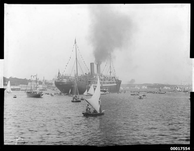 | Keywords: anniversary regatta anniversaryregatta regatta sydney harbour sydneyharbour sydney race flagship harbour scenes harbourscenes passenger liner passengerliner mcmahons point mcmahonspoint milsons point milsonspoint königin luise königinluise hms royal arthyr hmsroyalarthyr 1898 hms royal arthur hmsroyalarthur north german lloyd northgermanlloyd norddeutscher lloyd norddeutscherlloyd omar blackandwhite monochrome photo border outdoor black and white The North German Lloyd passenger ship KÖNIGIN LUISE was Flagship of the Anniversary Regatta in 1898 and 1899. HMS ROYAL ARTHUR, flagship of the Australia Station from 1897 to 1904, is in the background to the far right. In the January 1898 regatta, KÖNIGIN LUISE was moored near Lavender Bay and in the 1899 regatta it was moored near Neutral Bay; therefore this photograph is likely to be from the 1898 regatta. The Milsons Point ferry and cable terminal appears to the left of the vessel. The ANMM undertakes research and accepts public comments that enhance the information we hold about images in our collection. This record has been updated accordingly. Photographer: unknown Object no. 00017554 The North German Lloyd passenger ship KÖNIGIN LUISE was Flagship of the Anniversary Regatta in 1898 and 1899. HMS ROYAL ARTHUR, flagship of the Australia Station from 1897 to 1904, is in the background to the far right. In the January 1898 regatta, KÖNIGIN LUISE was moored near Lavender Bay and in the 1899 regatta it was moored near Neutral Bay; therefore this photograph is likely to be from the 1898 regatta. The Milsons Point ferry and cable terminal appears to the left of the vessel. The ANMM undertakes research and accepts public comments that enhance the information we hold about images in our collection. This record has been updated accordingly. Photographer: unknown Object no. 00017554 |