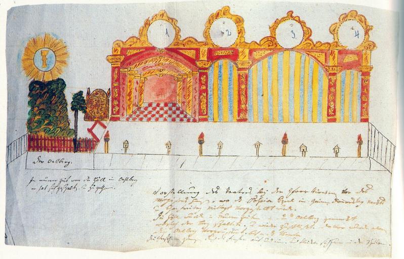 | Keywords: Passionsspiel buehne gmuend.jpg Bühne des Schwäbisch Gmünder Passionsspiels Zeichnung von Dominikus Debler in seiner Chronik Stadtarchiv Schwäbisch Gmünd Bd IX S 299 Die Chronik des Dominikus Debler 1756-1836 2006 S 114 Anfang 19 Jahrhundert Dominikus Debler PD-Art Passionsspiel Schwäbisch Gmünd Dominikus Debler Theatre in art |