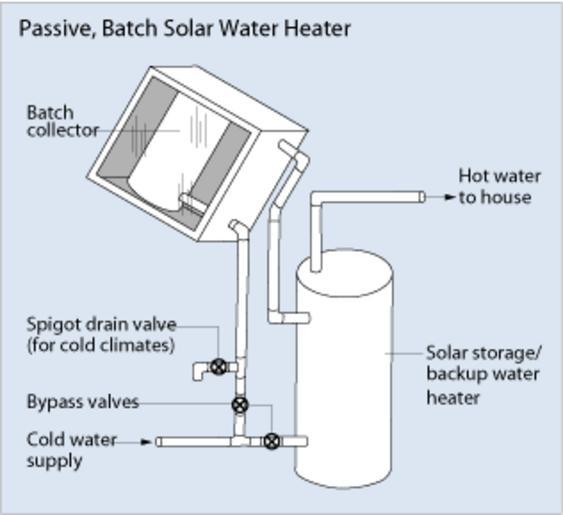 | Keywords: Passive batch solar water.gif en Passive_batch_solar_water gif 316 × 289 pixel file size 9 KB MIME type image/gif This picture provided as public domain here by the US Dept of Energy The batch heater itself consists of a pressure tank with selective surface double or triple glazing and reflector see http //www eere energy gov/de/solar_hotwater html http //www eere energy gov/consumer/your_home/water_heating/index cfm/mytopic 12850 print EERE 2009-02-12 diagram Solar hot water panels PD-USGov |